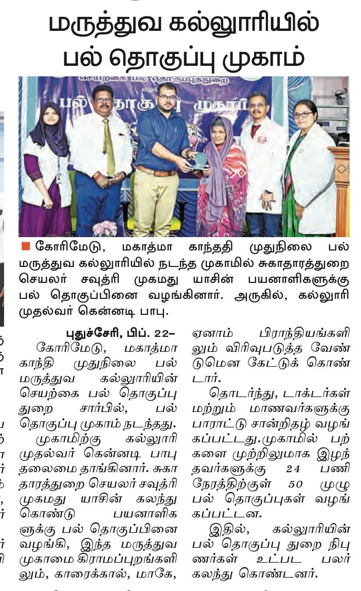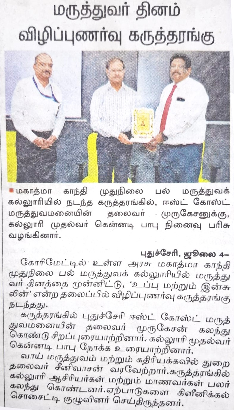 I deem it my privilege to welcome you all to Mahatma Gandhi Postgraduate Institute of Dental Sciences, the only Govt. Dental Institution in the U.T. of Puducherry. Our Institute is appreciated for its excellence by the Dental Council of India and I am honored to serve as the Dean of this Prestigious Institute.